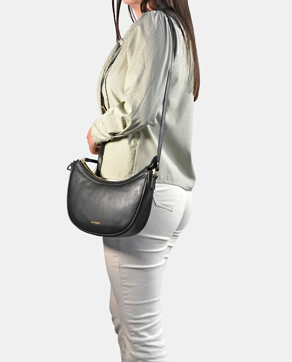 Сумка через плечо Guy Laroche Gondola из мягкой яловой кожи. Модель с регулируемым плечевым ремнем с пряжкой, основная застежка на металлическую молнию. Внутри на подкладке из текстильного материала, есть 2 кармана, один из них на молнии.