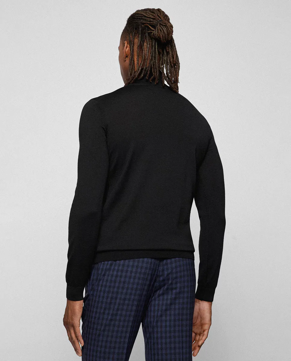 Приталенный свитер с высоким воротником из дышащей натуральной шерсти, который можно носить круглый год. Он соткан со структурированными деталями на боковых швах. Эта одежда изготовлена минимум на 60 % из ответственно полученной и сертифицированной шерсти. В HUGO BOSS использование ответственной шерсти означает соблюдение стандартов пяти свобод защиты животных.
