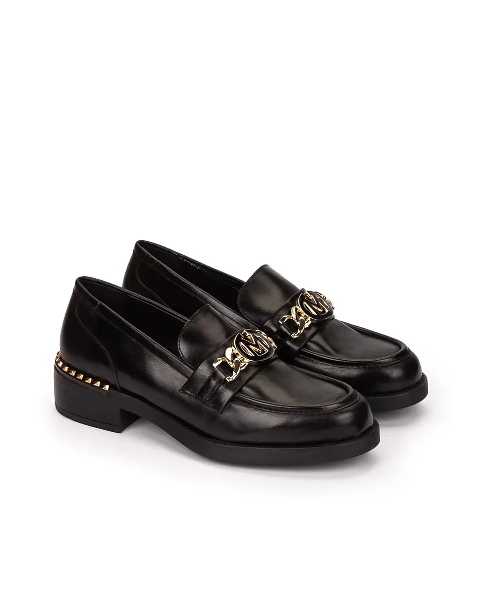 Женские кожаные мокасины с декором. Дизайн в студенческом стиле, соответствующий звездным тенденциям сезона. Высота каблука в сочетании с платформой обеспечивает больший комфорт модели и правильную амортизацию стопы.
