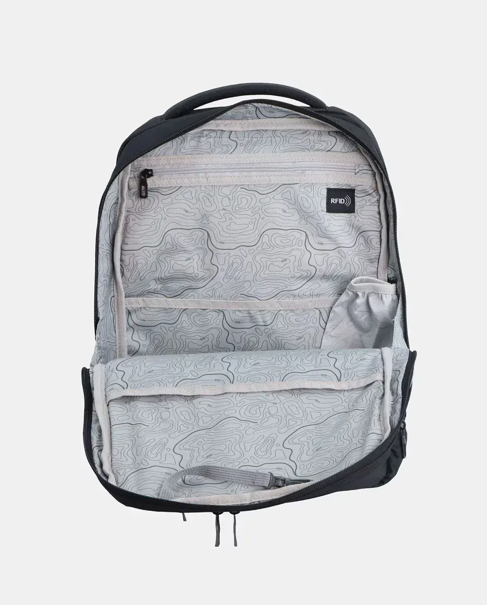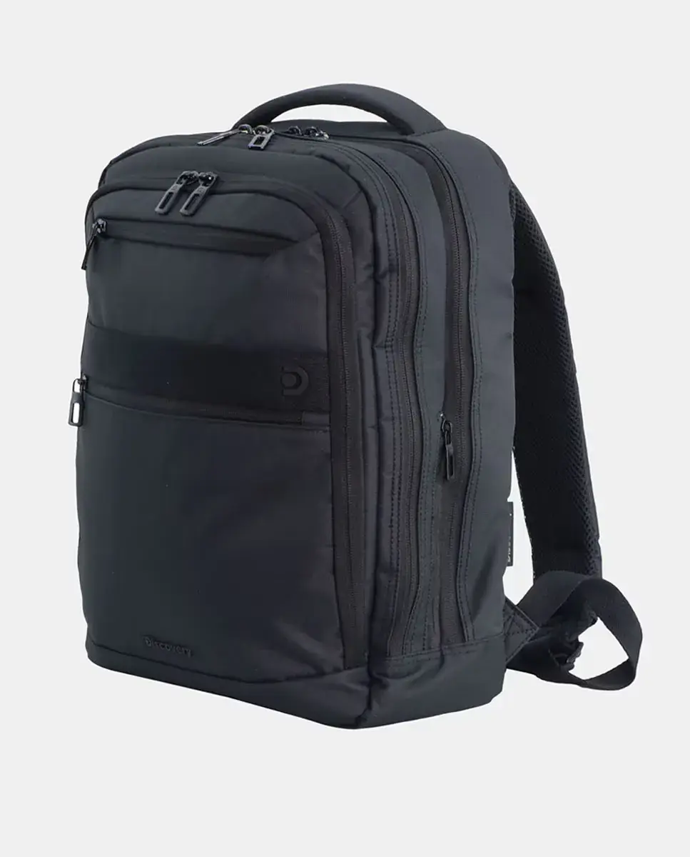 Рюкзак для компьютера Discovery Downtown с тремя основными отделениями на молнии, передними карманами на молнии, внутренним карманом с RFID-меткой на молнии, внутренними открытыми карманами, отделением для компьютера на молнии, отделением для планшета, боковыми открытыми карманами, внутренним отделением для журналов, внутренним кольцом для ключей, задней лентой для подгонки под чемодан. ручка, удобная верхняя ручка и регулируемые ремни.