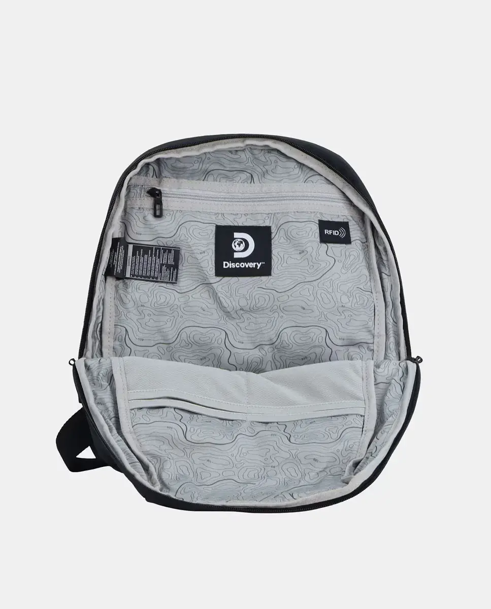 Рюкзак Discovery Small Downtown с основным отделением на молнии, передним карманом на молнии, внутренним карманом RFID на молнии, открытыми внутренними карманами, внутренним отделением для планшета с мягкой подкладкой, внутренним кольцом для ключей, задним ремнем для подгонки под ручку чемодана, удобной верхней ручкой и регулируемыми мягкими лямками.