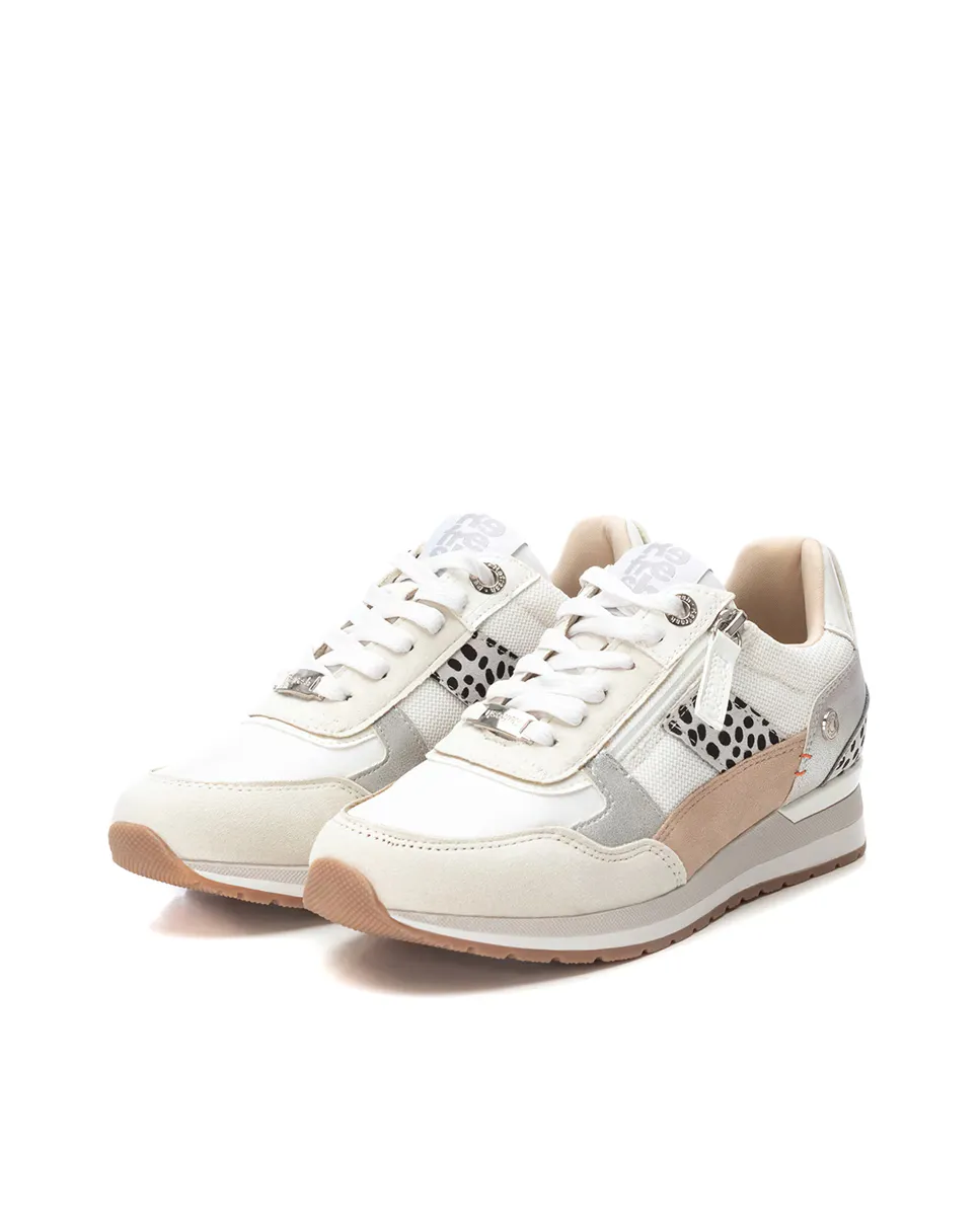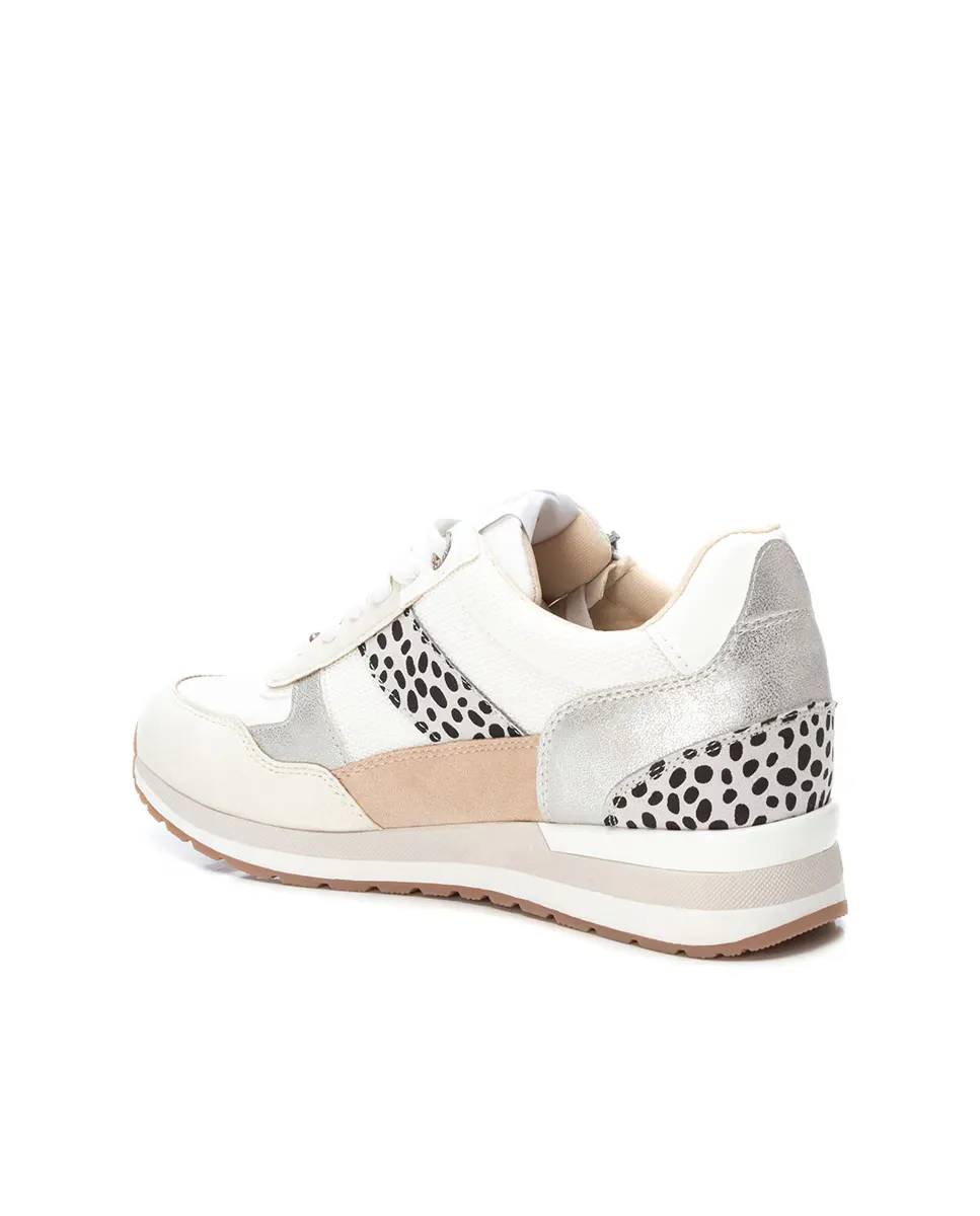 Женские кроссовки от бренда Refresh. Изготовлен из материала, имитирующего кожу в сочетании с тканью. Боковая молния и регулируемые шнурки. Животный принт в тренде этого сезона. Удобная нескользящая резиновая подошва. Данная модель получила веганский сертификат всемирной организации PETA (Организация по защите прав животных).