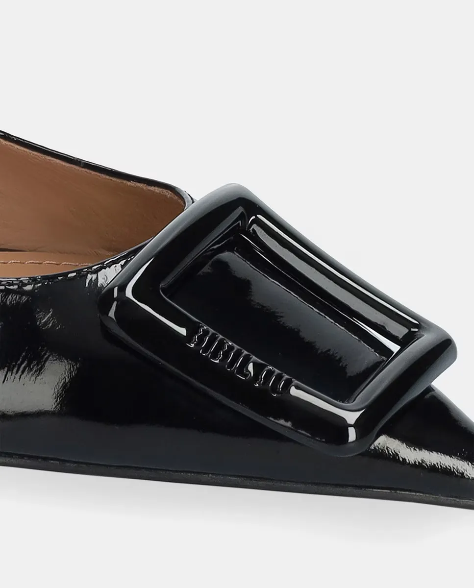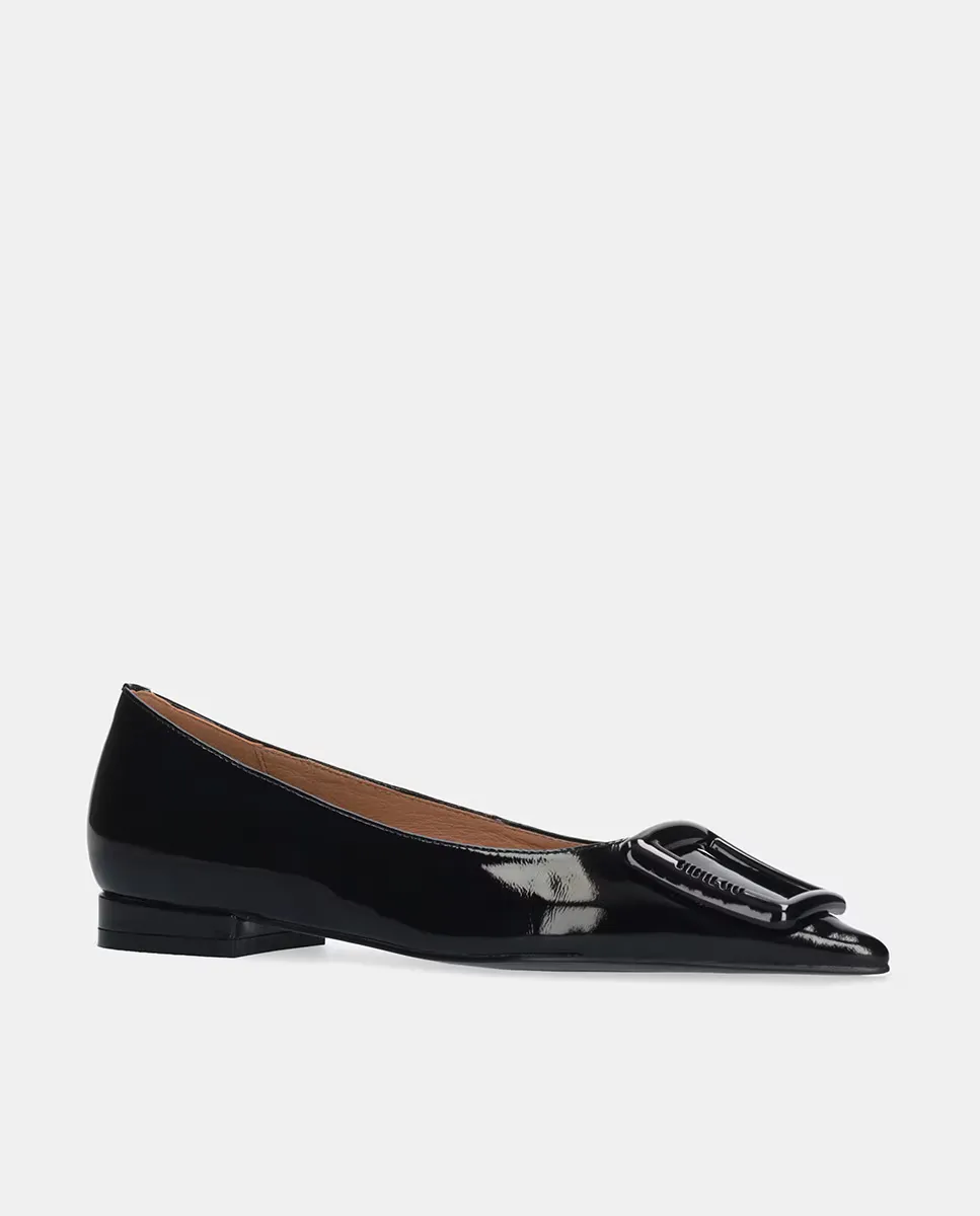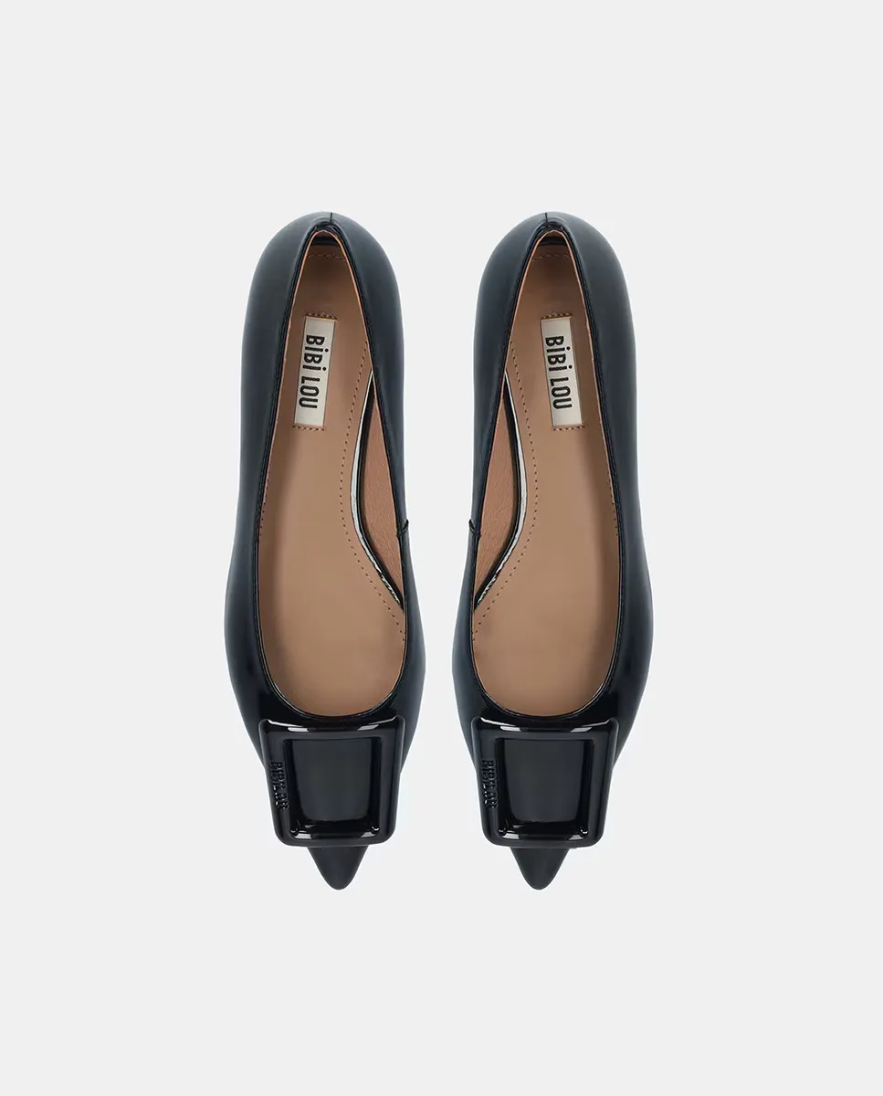 Женские кожаные туфли Bibi Lou. Модель Poznan Flat с острым носком, декором на подкладке и плоским каблуком 0,5 см.