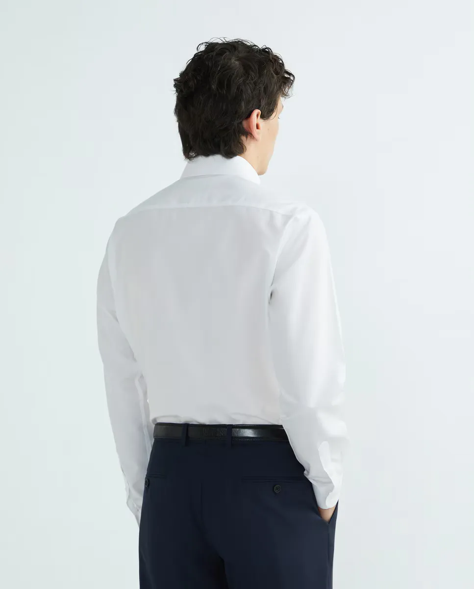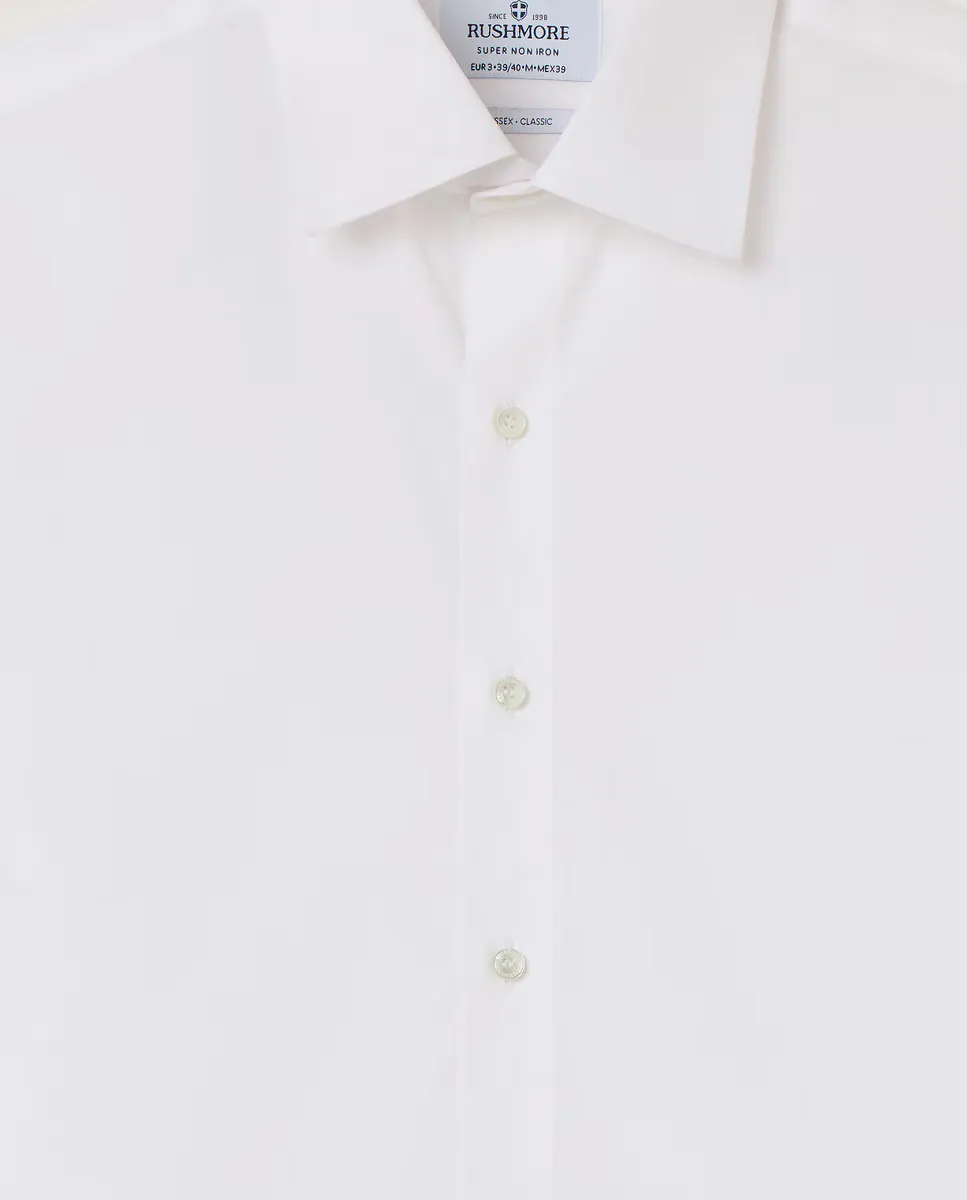 Классическая рубашка стандартного кроя, 100% хлопок, однотонный поплин SUPER NON IRON, белый цвет, классический воротник, разноразмерные манжеты