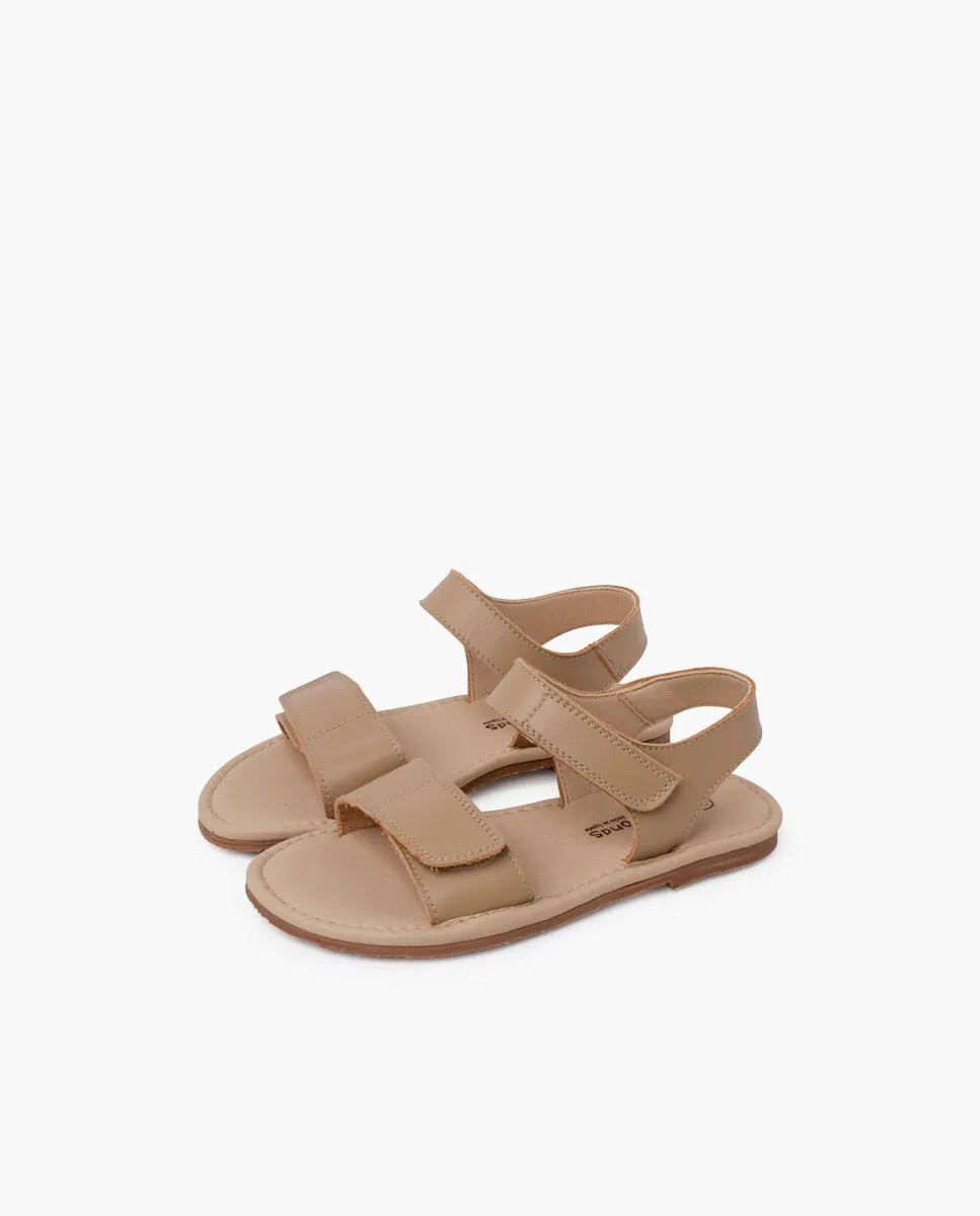 Открытые босоножки из кожи наппа для девочек с липкими ремешками Pisamonas, бежевый