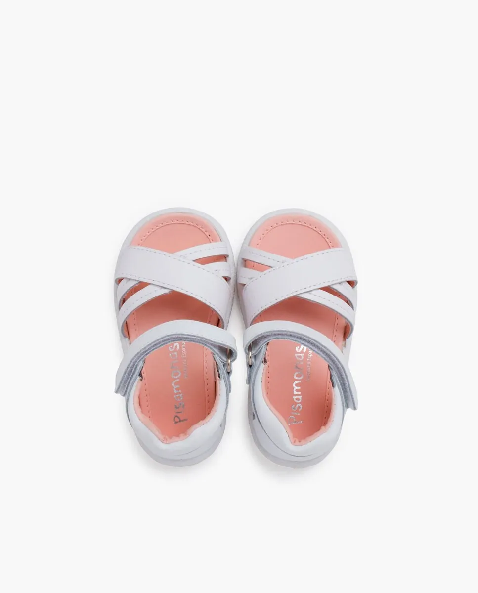 Открытые босоножки с перекрещенными ремешками "Первые шаги девочки" Pisamonas, белый