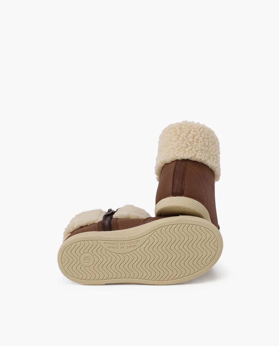 Вы ищете классные ботинки для своих малышей осенью и зимой? Что ж, взгляните на эту новинку, которая вам обязательно понравится. Эти ботинки для мальчиков и девочек лучше всего подходят для холодных месяцев; идеальное сочетание стиля и функциональности. Светлая резиновая подошва прекрасно сочетается с коричневым цветом ботинок, и самое приятное то, что ваши мини-искатели приключений смогут бегать повсюду, не скользя. Кроме того, полосатый резиновый носок придает кроссовки спортивный вид, а швы очень хорошо сделаны, так что забудьте о их быстром повреждении. Они суперстойкие! Теплый воротник из ткани, напоминающей овчину, обхватывает лодыжки малышей, позволяя им ходить и быть защищенными. Внутри у них теплая подкладка, замерзать не придется! А боковая молния — самая практичная вещь на свете, ваши малыши смогут надеть ее на себя. Независимость к власти! Еще одна вещь, которая вам понравится: они сделаны из веганской кожи, поэтому они не только красивы, но и экологичны. Что вы думаете? У нас они есть в размерах от 22 до 32 для детей до 6–7 лет или около того. Проверьте их!