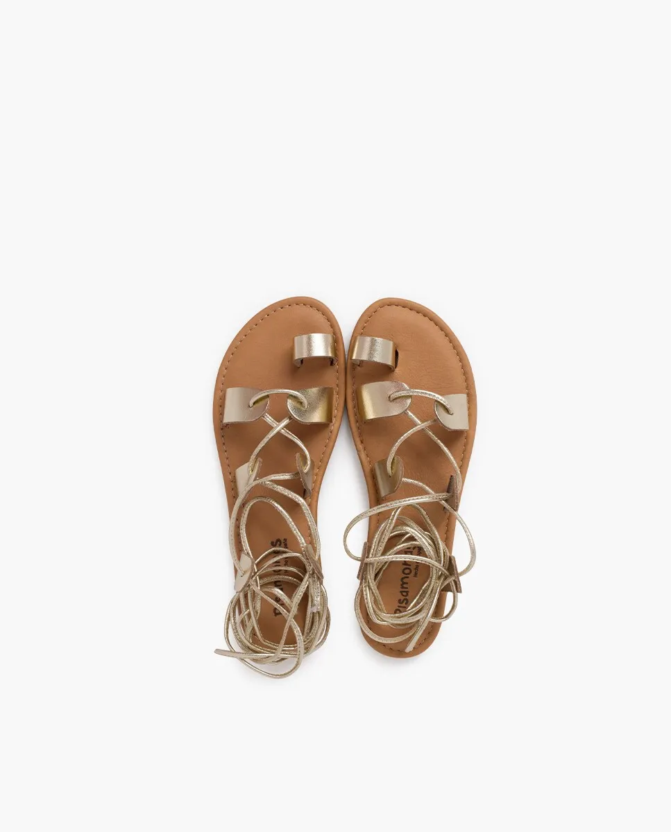 Открытые римские кожаные сандалии для девочек с ремешками Pisamonas, бежевый