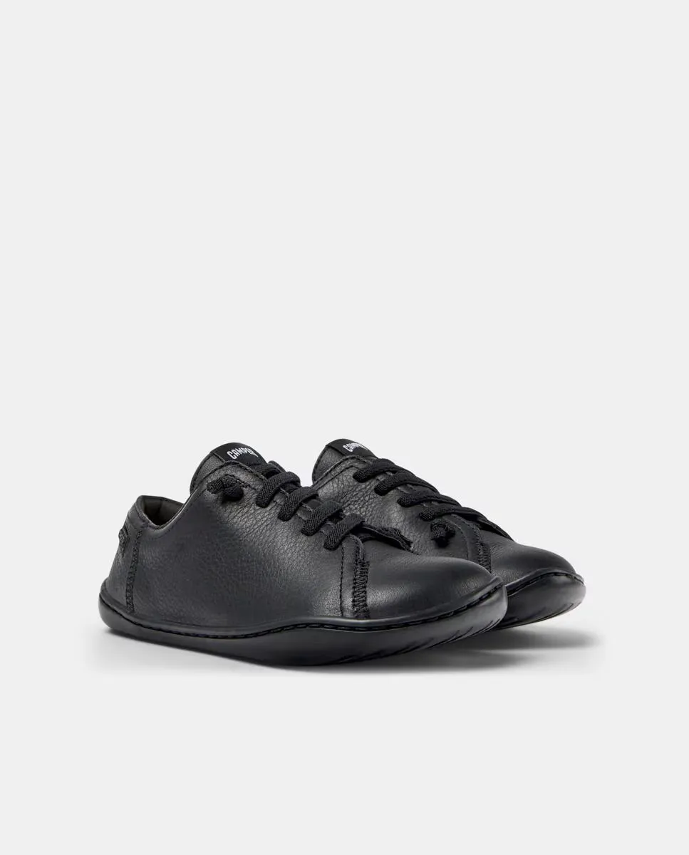 Однотонные детские кожаные кроссовки Peu Cami на шнурках Camper, черный