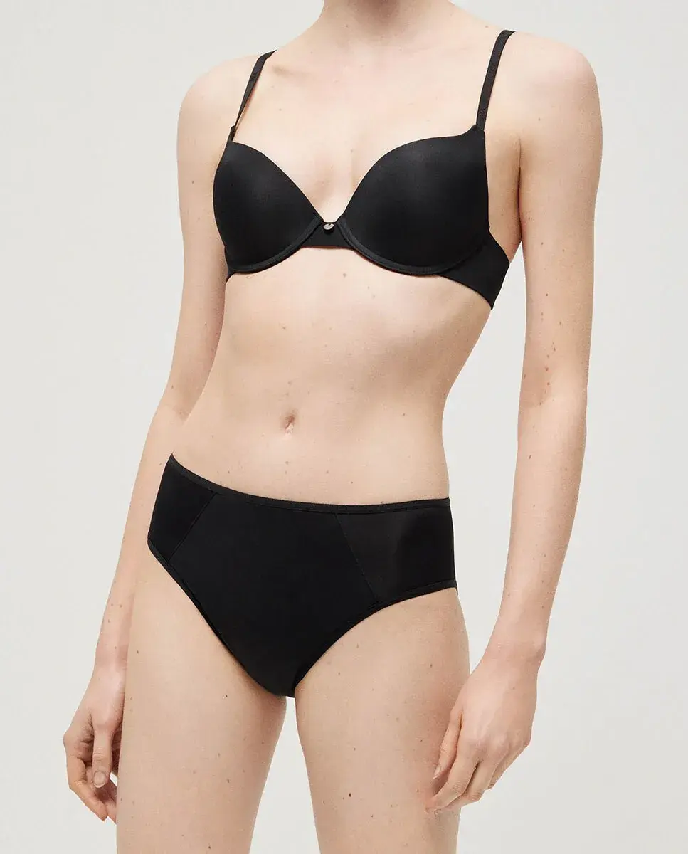 Эта одежда плотно прилегает к телу. Для большего комфорта рекомендуем выбирать на размер больше. Узнайте больше о наших менструальных трусиках здесь. Интимная одежда, созданная специально для вас. Наши впитывающие менструальные трусики изготовлены из микрофибры, которая идеально прилегает к телу и обеспечивает комфорт во время менструации, а также имеют антибактериальный бамбуковый слой, который помогает предотвратить неприятный запах. Двигайтесь с полной свободой с этим интимным предметом одежды, созданным для всех типов женщин, но особенно для тех, кого ничто не сдерживает. Эргономичный дизайн подарит вам неповторимое ощущение комфорта. Наши новые трусики для менструации — это решение, специально разработанное, чтобы сделать ваши менструации более терпимыми и комфортными. Трусики для менструации. Нейтрализует запахи и защищает от протеканий: наши менструальные трусики, созданные для вашего комфорта и спокойствия, имеют мягкую внутреннюю подкладку из 100% дренирующего и гипоаллергенного хлопка. Он включает в себя впитывающий бамбуковый слой с антибактериальными свойствами на водонепроницаемой основе, которая предотвращает непредвиденные протечки. Таким образом, вы всегда можете чувствовать себя защищенным и безопасным. В Ysabel Mora мы создаем нашу одежду, думая о вас и планете, мы заботимся об окружающей среде и вашем благополучии. Эта одежда является лучшим решением, экологичным и бережным к вашей коже, она заставит вас заменить другие виды интимной гигиены. Использование натуральных материалов и их приготовление производятся с максимальной заботой о вашей коже в эти дни, без химикатов и парфюмерии, которые могут вас раздражать. Наши трусики идеально подходят для женщин со средними выделениями и обеспечивают адекватную защиту в те дни, когда вам нужно чувствовать себя уверенно. Идеальное решение, позволяющее вам чувствовать себя комфортно и защищенно во время менструации. Не позволяйте ничему вас остановить, попробуйте наши трусики для беременных и почувствуйте разницу. Откройте для себя разницу в вашей жизни вместе с Исабель Мора! Состав: 90% полиамид, 10% эластан.