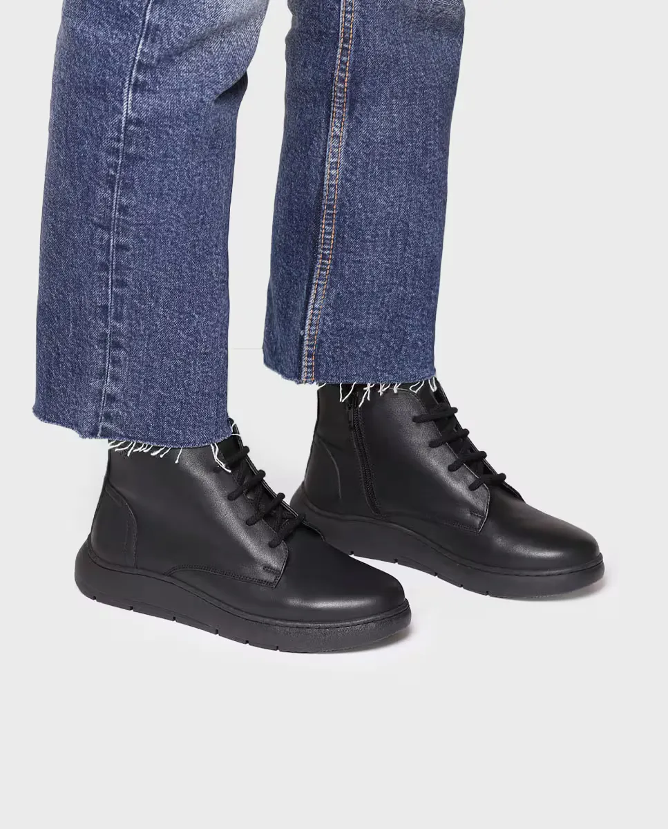 РЫБАЛКА. Эти женские ботинки выполнены из кожи гладких тонов. Имеются шнурки, обеспечивающие идеальное прилегание к ноге. Он также имеет удобную боковую молнию, чтобы его было легко надевать. Контрастная подошва толщиной 3 см изготовлена ​​из нескользящей резины. Внутренняя подкладка и подошва изготовлены из синтетической ткани. Эта модель соответствует обычному размеру, если вы находитесь между двумя размерами, выберите больший размер.