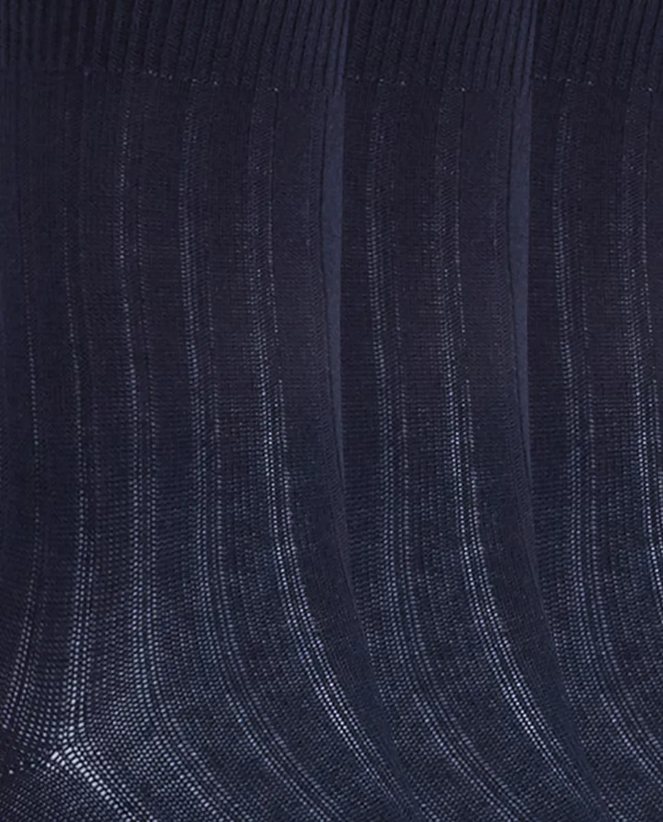 Набор из 6 пар хлопковых носков в рубчик Basix Punto Blanco, синий