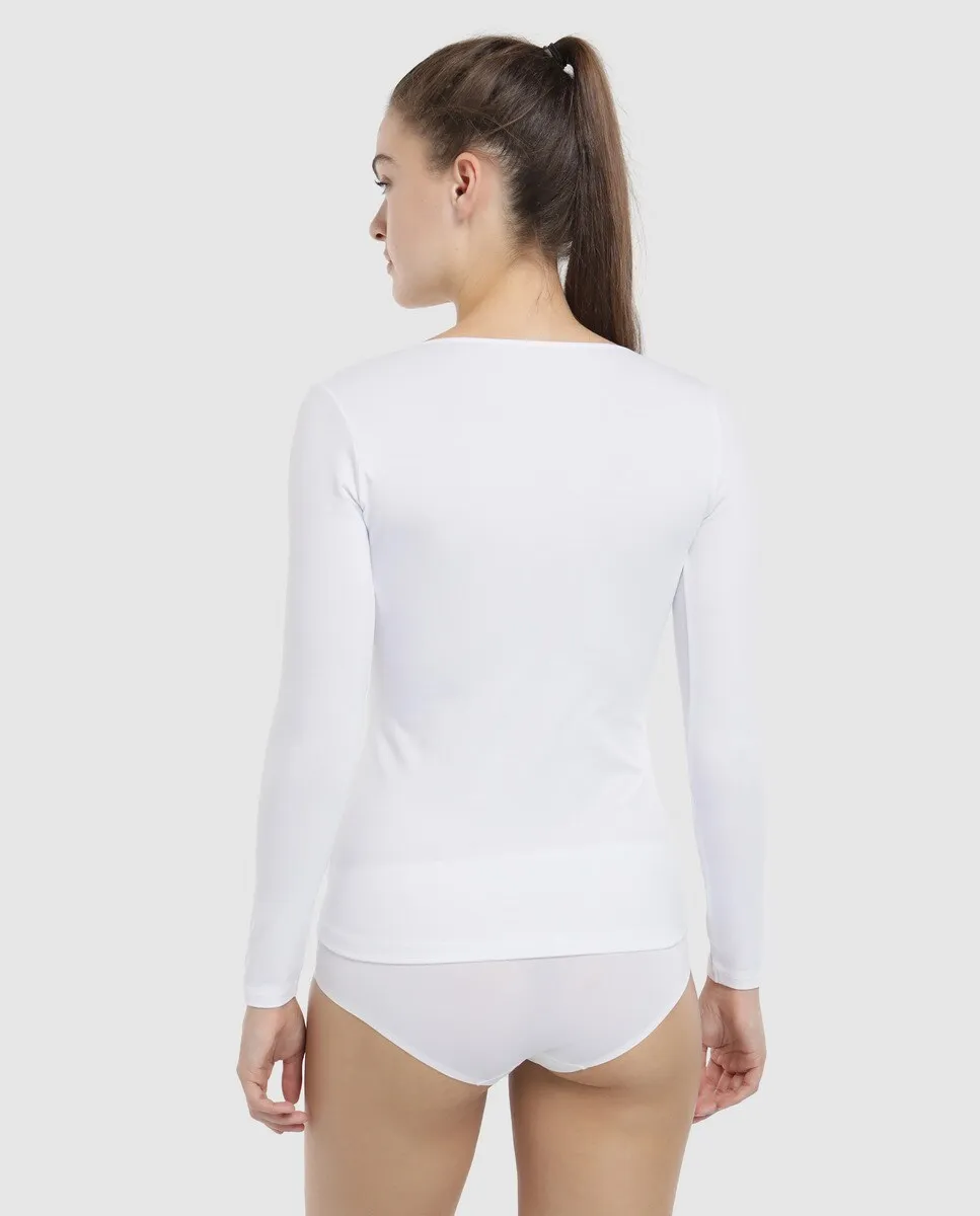 Футболка из хлопковой лайкры с длинными рукавами и V-образным вырезом