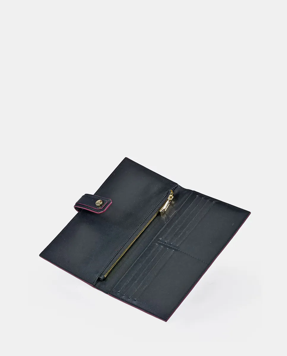 Большой женский визитница из воловьей кожи. Внутренний дизайн с 2 держателями для карт общей вместимостью 8 карт, 2 карманами и отделением на молнии. Основная застежка с защелкой.