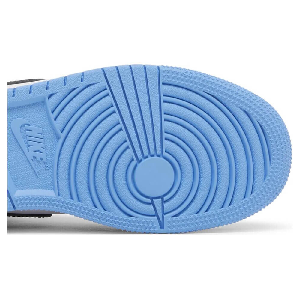 Созданные для детей, кроссовки Air Jordan 1 Retro High OG GS 'UNC Toe' демонстрируют цветовую комбинацию, напоминающую альма-матер Майкла Джордана. Гладкая кожа развернута на верхней части с нейтральной бело-черной основой с акцентами университетского синего цвета на носке, накладке на пятке и лодыжке. Эстетика обуви в стиле OG дополнена тканой биркой Nike на язычке и тисненым логотипом Wings на боковом клапане воротника. В основе кроссовок лежит белая резиновая промежуточная подошва, оснащенная инкапсулированной амортизацией Air-sole и поддерживаемая цепкой резиновой подошвой синего цвета Tar Heel.