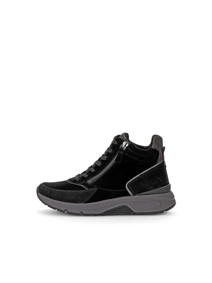 Спортивные ботильоны RollingSoft – незаменимая вещь для женщин, следящих за модой. Причина: их можно комбинировать разными способами, и они являются популярным выбором, особенно в переходный период. Высококачественный черный верх из высококачественной кожи придает модели повседневный вид. Эта модель оснащена съемной стелькой из переработанного материала, что не только обеспечивает комфорт, но и способствует экологически сознательному подходу. спортивный