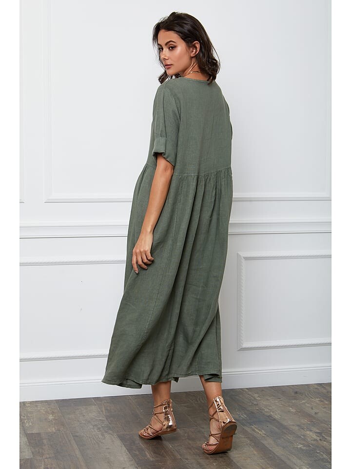 Длинное платье La Compagnie Du Lin Leinen Gustavo, хаки
