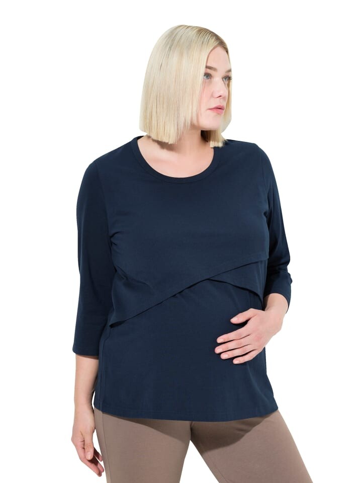 Футболка, форма для беременных. Передняя часть в виде запаха и многослойного вида - специально для кормления грудью. Круглый вырез, рукава 3/4. Внешний материал: 100% хлопок.