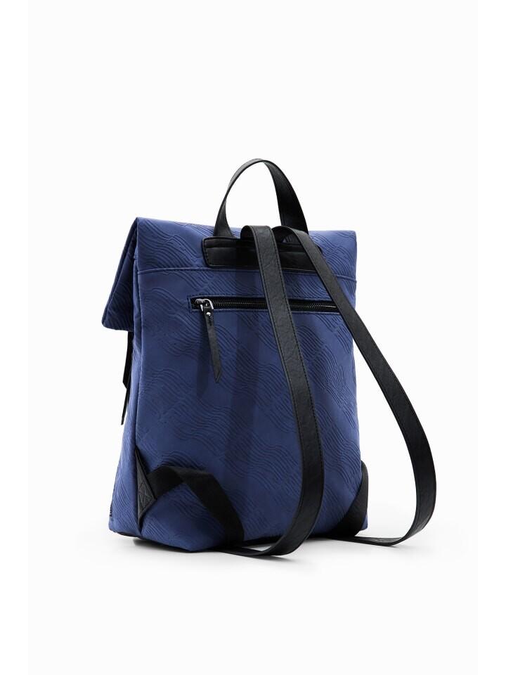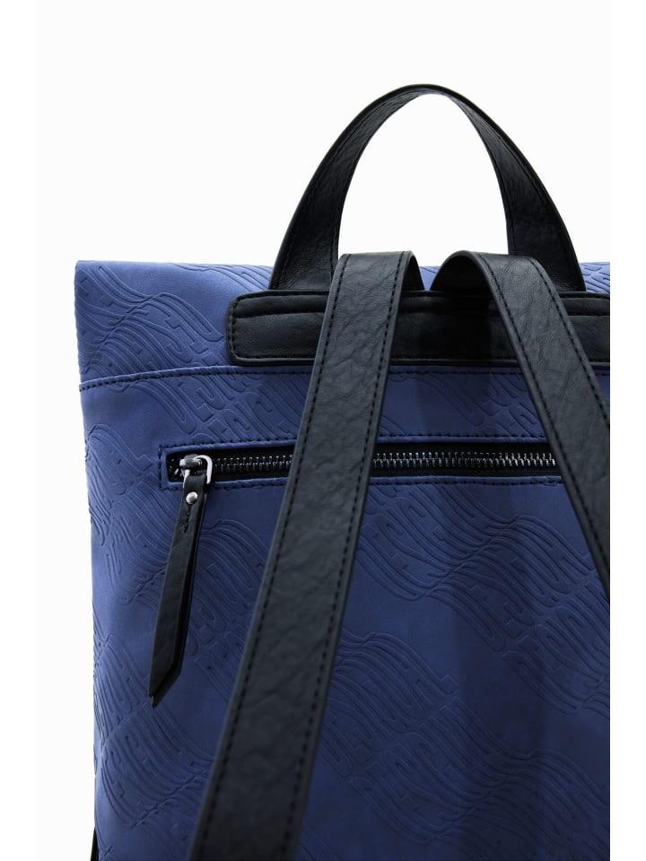 Рюкзак с клапаном и рельефной застежкой, украшенной логотипами Desigual по всей поверхности. С карманами и большими молниями спереди. Очень мягкий на ощупь и очень универсальный.