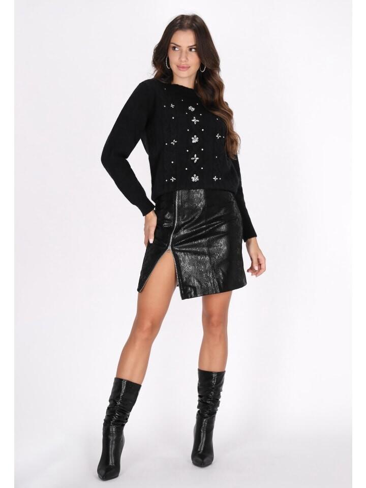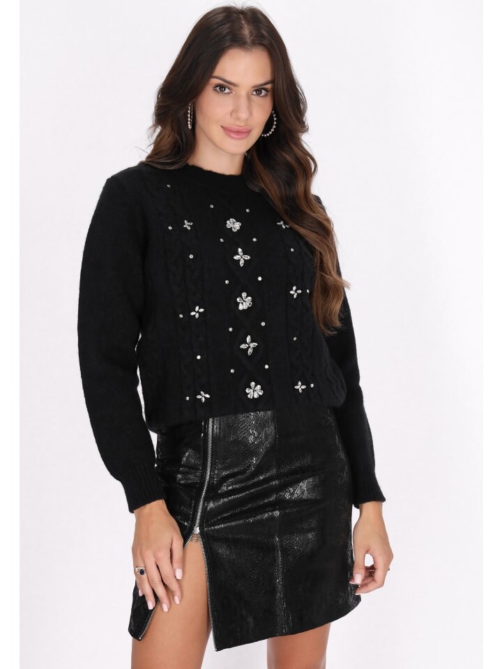 Обогатите свой зимний гардероб этим искусно созданным свитером. Косая вязка украшена изящно вышитыми цветами, а также мерцающими пайетками и бисером, создающими неповторимый фактурный вид. Ребристые манжеты и ребристый пояс обеспечивают удобную посадку, а круглый вырез придает нотку элегантности. Оставайтесь уютными и стильными в этом универсальном предмете одежды, который излучает очарование и элегантность.