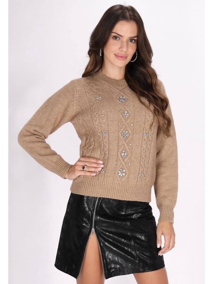 Обогатите свой зимний гардероб этим искусно созданным свитером. Косая вязка украшена изящно вышитыми цветами, а также мерцающими пайетками и бисером, создающими неповторимый фактурный вид. Ребристые манжеты и ребристый пояс обеспечивают удобную посадку, а круглый вырез придает нотку элегантности. Оставайтесь уютными и стильными в этом универсальном предмете одежды, который излучает очарование и элегантность.