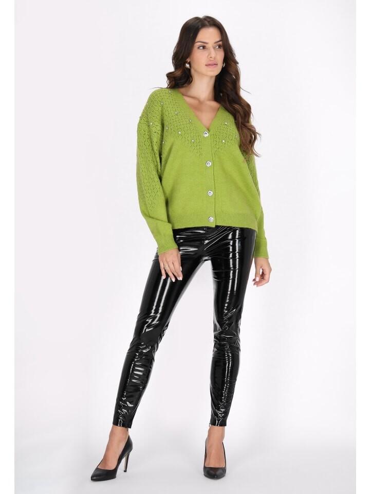 - Вязаный кардиган с V-образным вырезом и планкой на пуговицах