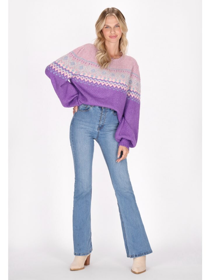 Придайте своему образу неподвластный времени стиль с помощью этого вязаного свитера с круглым вырезом и длинными рукавами. Яркий узор на груди представляет собой геометрические формы и линии, создающие эстетику в традиционном или скандинавском стиле. Ребристый низ, манжеты и вырез обеспечивают плотную посадку, а свободный силуэт с заниженной линией плеч обеспечивает повседневный комфорт.