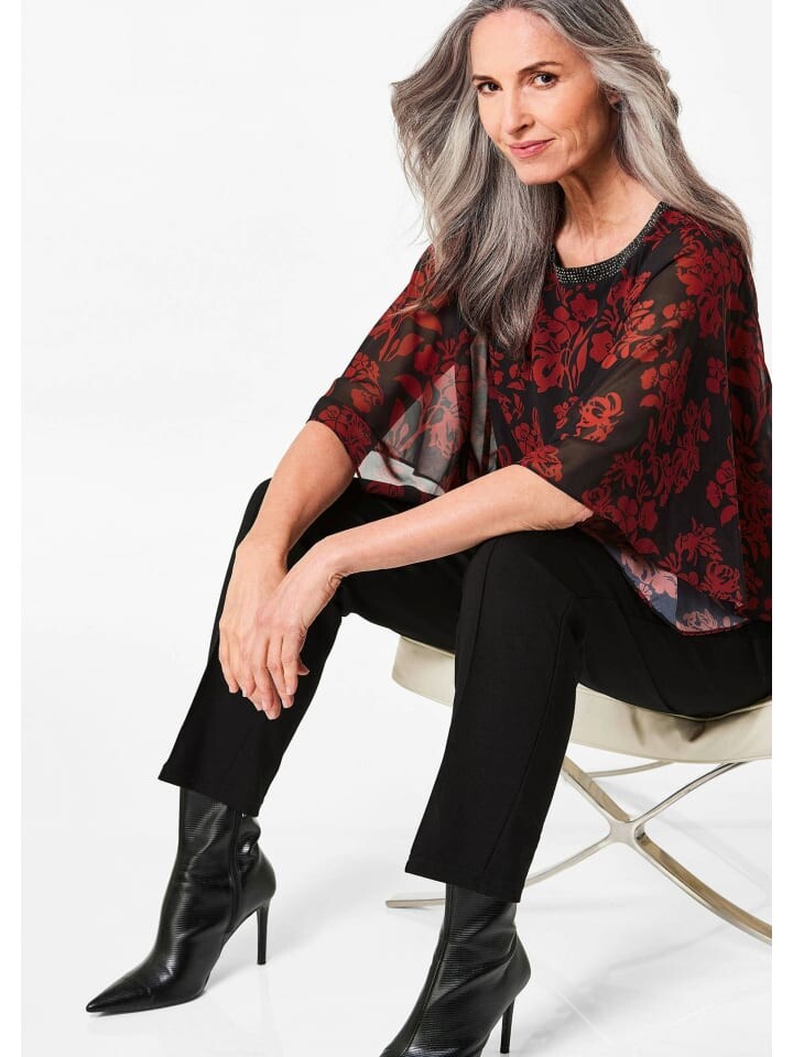 Блуза GOLDNER nshirt, цвет schwarz/rot/geblümt