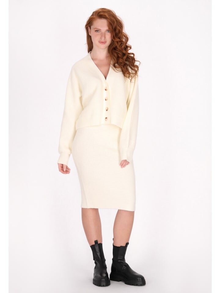 Элегантная и утонченная юбка приталенного силуэта, облегающая бедра и талию и плавно струящаяся до подола длиной до колен. Структурированное переплетение придает ткани глубину и обеспечивает удобную посадку. Юбка минималистского дизайна без украшений и карманов ориентирована на четкие линии. Гладкий пояс придает ухоженный вид. Тонкая застежка-молния гарантирует облегающую посадку и элегантный внешний вид.