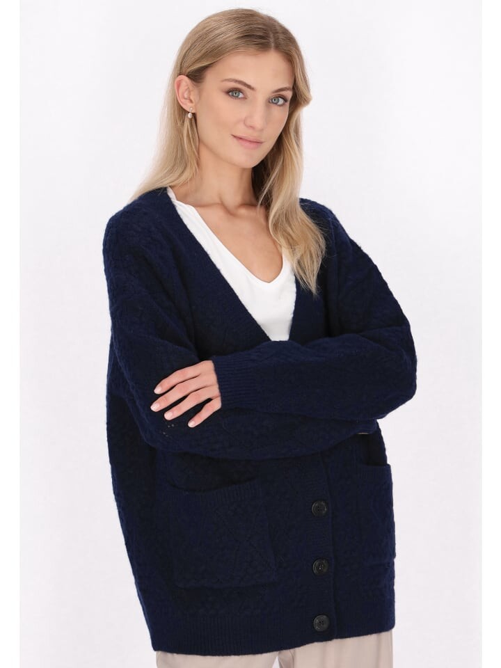 Откройте для себя элегантный кардиган с V-образным вырезом и планкой на пуговицах. Текстурированный узор сочетает в себе ромбы и косы и в сочетании с длинными рукавами и ребристыми манжетами придает куртке дополнительный шарм. Этот кардиган имеет удобную посадку, имеет два передних кармана и планку на пуговицах для застегивания. Тонкая фирменная бирка идеально дополнит эту уютную вещь, которая обязательно должна быть в вашем гардеробе.