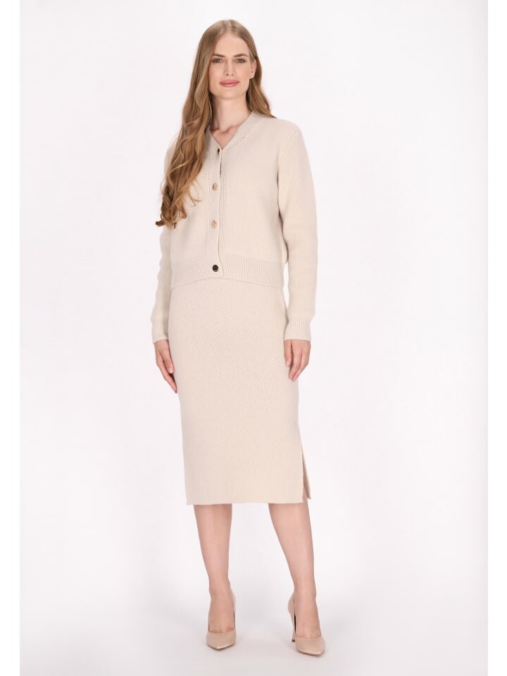 Этот кардиган имеет интригующий узор с ребристыми деталями на вырезе, манжетах и подоле. Полоса с пуговицами по всей длине придает изделию элегантный вид. Этот кардиган с длинными рукавами и укороченной длиной выглядит стильно и уютно. Последовательный повторяющийся мотив создает визуальный интерес на толстой текстурированной ткани - идеально подходит для сохранения тепла в стиле.
