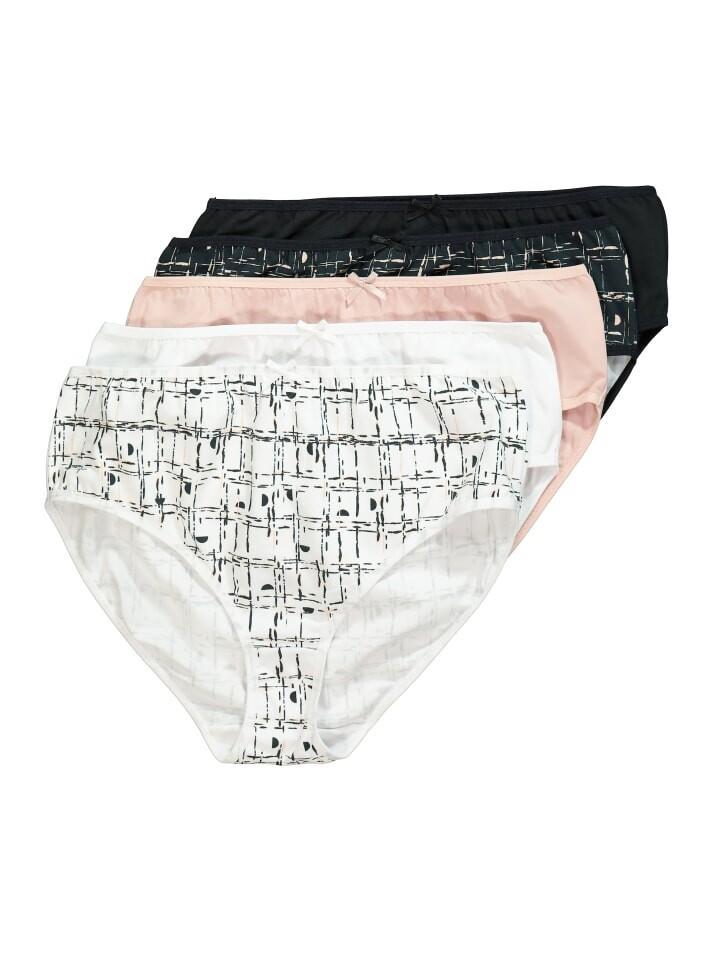 Трусы-миди в упаковке по 5 штук из приятного для кожи трикотажа. 2x с графическим принтом по всей поверхности, 3x в соответствующем цвете.