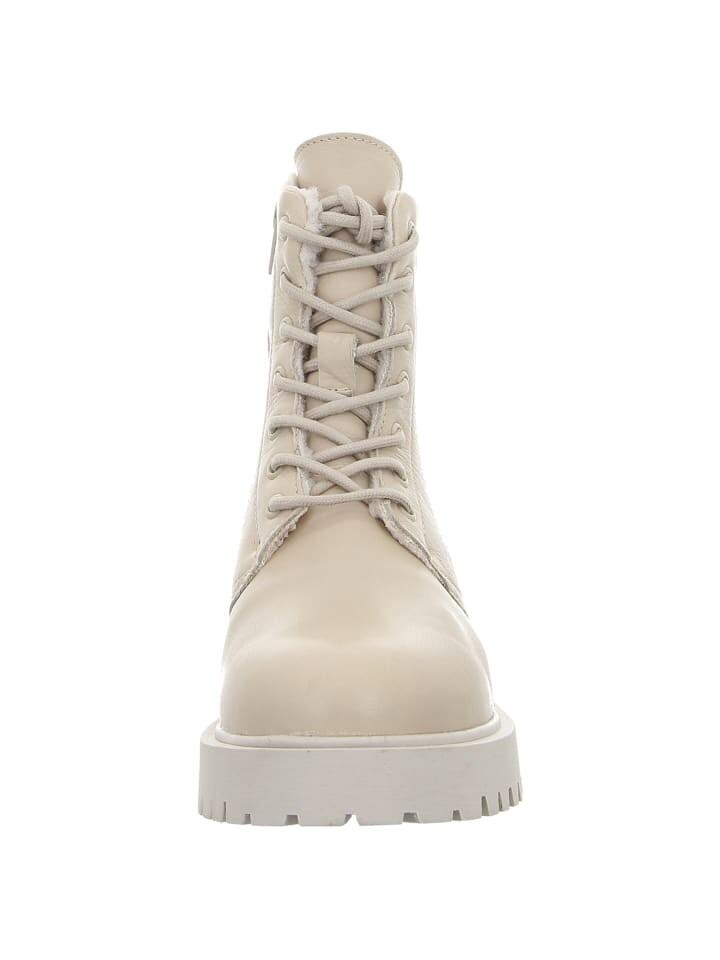 Бежевые ботинки на шнуровке Geneve 29 от Apple of Eden, которые выглядят стильно. Кожаные ботинки на шнуровке имеют модный дизайн. Подошва на платформе защищает ваши ноги и обеспечивает комфортный внешний вид. Благодаря молнии внутри вы легко сможете попасть в багажник. Женщинам нельзя пропустить это сочетание комфорта и стиля от Apple of Eden!