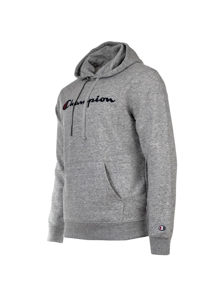 Однотонная мужская толстовка от бренда Champion. Спортивный свитер с большим логотипом спереди. С практичным карманом-кенгуру и капюшоном.