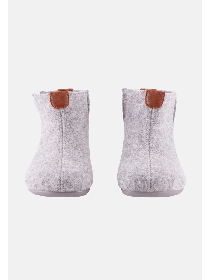 Женские шерстяные тапочки Ester дарят тепло и комфорт. Модель высотой до щиколотки впечатляет тонкими боковыми разрезами, видимым швом спереди и кожаными вставками на голенище. Стелька из мягкой шерсти и нескользящая резиновая подошва создают дополнительный комфорт.