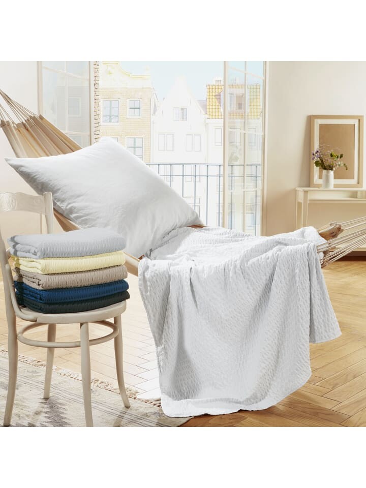 Летнее одеяло REDBEST из сирсакера из микрофибры "Детройт" в упаковке 2 шт. Приятное легкое одеяло доставляет удовольствие теплыми ночами, а также создает прекрасную фигуру во время принятия солнечных ванн и летних вечеров на террасе. Сирсакер особенно подходит для летнего использования, поскольку структура креповой ткани образует климатическую камеру и поэтому ощущается на коже как воздушная. Простая в уходе микрофибра пропускает воздух и быстро сохнет. Их поверхность кажется нежной, как бархат. Двухслойный, с ленточной окантовкой по всему периметру.