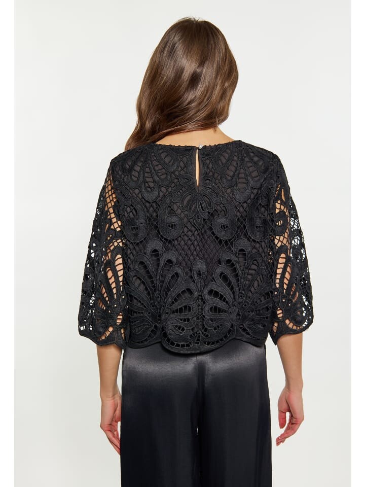 Представляем наш нежный и замысловатый кружевной топ, который идеально подойдет для придания элегантности любому формальному или полуформальному наряду. Прозрачная ткань подчеркивает замысловатые цветочные и пейсли-узоры и создает потрясающее переплетение узоров. Зубчатые края и расклешенные рукава придают женственные детали, а узоры разной плотности добавляют глубины общему образу.