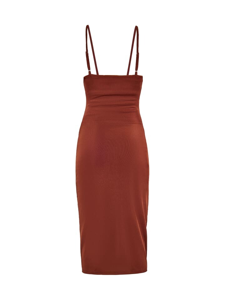 Это женственное платье миди на бретелях, с эластичным поясом и складками — элегантный и стильный выбор для вашего следующего вечера. Приталенный силуэт, глубокий круглый вырез и хлястик на шее создают шикарный образ. Мятые детали добавляют текстуры и подчеркивают силуэт, а эластичная полосатая ткань идеально повторяет форму вашего тела. Это облегающее платье, идеально подходящее для вечеринок или особых случаев, выделит вас. Этот продукт является частью коллекции Party Mix