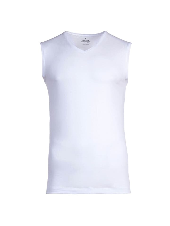 Майки мужские от бренда RAGMAN. В практичной упаковке 4 шт. Облегающая рубашка без рукавов и V-образного выреза. Приятный комфорт при ношении благодаря чистому хлопку.