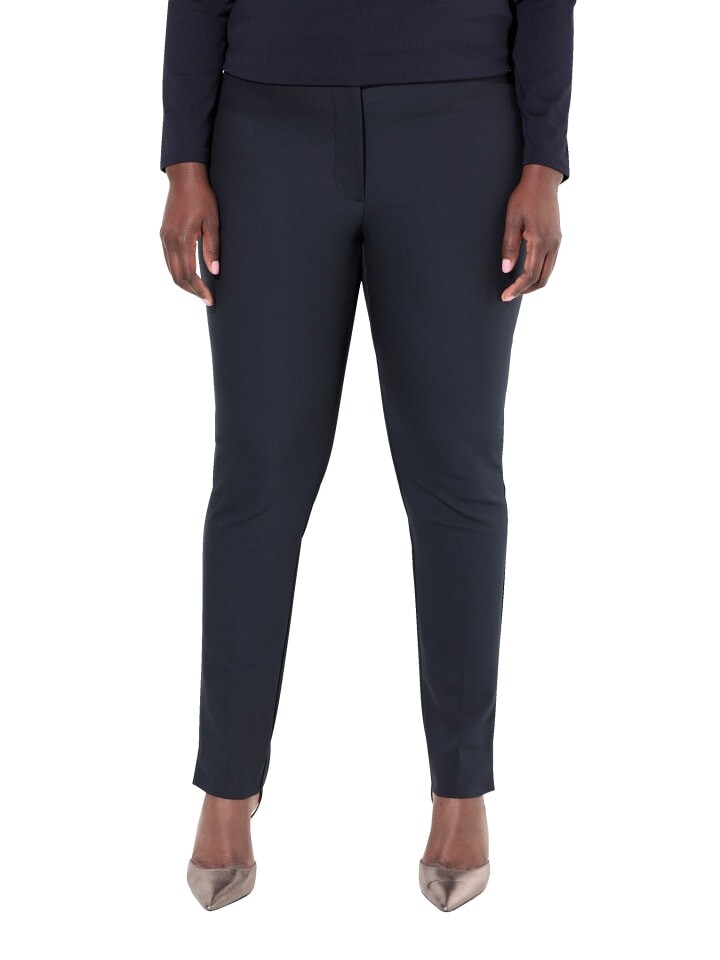 Брюки Sienna из хлопка и эластана, облегающего кроя, из приятной эластичной гладкой бенгальской ткани. Прикрепленный эластичный пояс с пуговицей и молнией. Подразумеваемый задний карман. Ширина низа (размер 42) около 32 см.