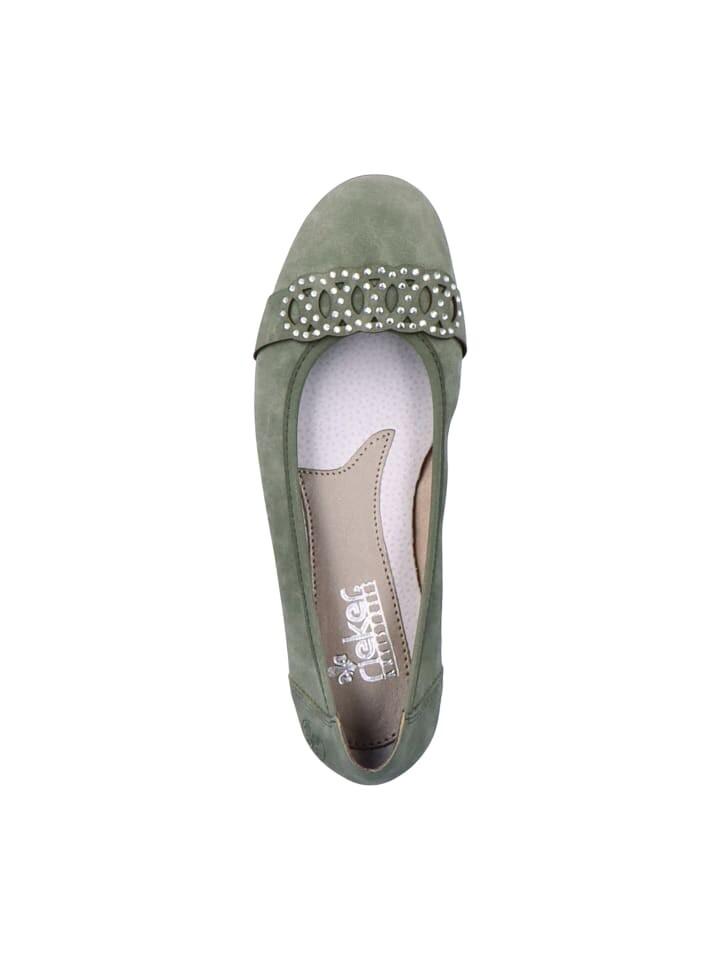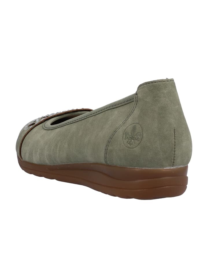 Балетки бренда Rieker из искусственной кожи плоские, элегантные и идеально подходят для повседневной носки. Внутренний материал из текстиля/пластика и гибкая подошва из пластика гарантируют комфортное перекатывание стопы.