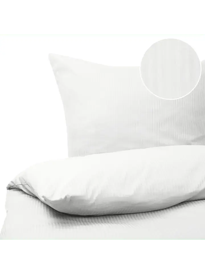 Современное постельное белье с тонким рисунком. Хорошо отдохните ночью в постели с этим высококачественным хлопковым постельным бельем. В комплект входит чехол на пододеяльник и чехол на подушку в тон - из абсолютно мягкого хлопкового сатина. Слегка блестящий полосатый узор привнесет немного роскоши в любую спальню.