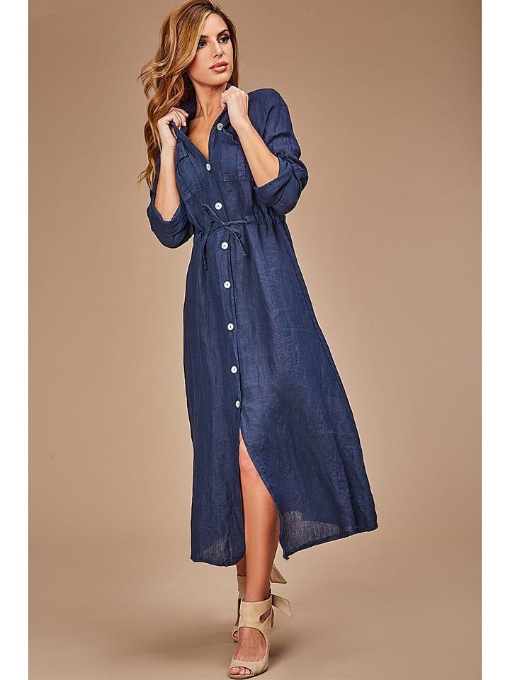 Длинное платье Le Monde du Lin Leinen, темно-синий