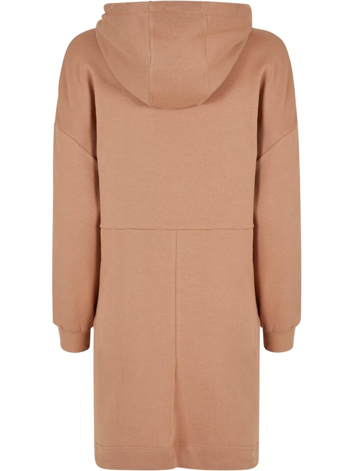 Модное женское платье длины мини, выполненное в стиле худи, излучает сексуальную крутость. В комплект поставки входят большой капюшон на кулиске, усиленный металлическими концами, а также, конечно же, широкие удобные манжеты на рукавах и подоле. Женское платье обычного кроя, имеет два практичных боковых кармана. Разделительные швы сзади придают модели изысканную форму. Платье-худи также заслуживает внимания благодаря мягкому органическому махровому материалу. Об этом также свидетельствует органическая маркировка и внешний лейбл-флажок на боковом шве.