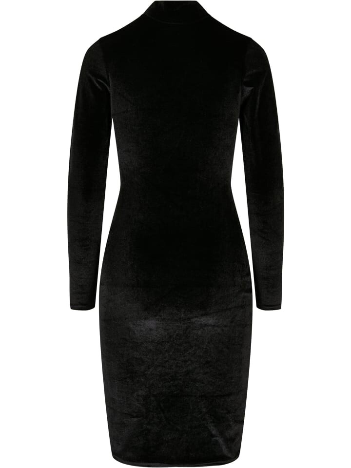 Внешний вид женственного женского платья определяется элегантным материалом из слегка мерцающего эластичного бархата и четким кроем. Имеет водолазку, длинные рукава и заканчивается на уровне колен. Покрой платья прекрасно облегает фигуру. Небольшое количество эластана в бархате обеспечивает непревзойденный комфорт при ношении.