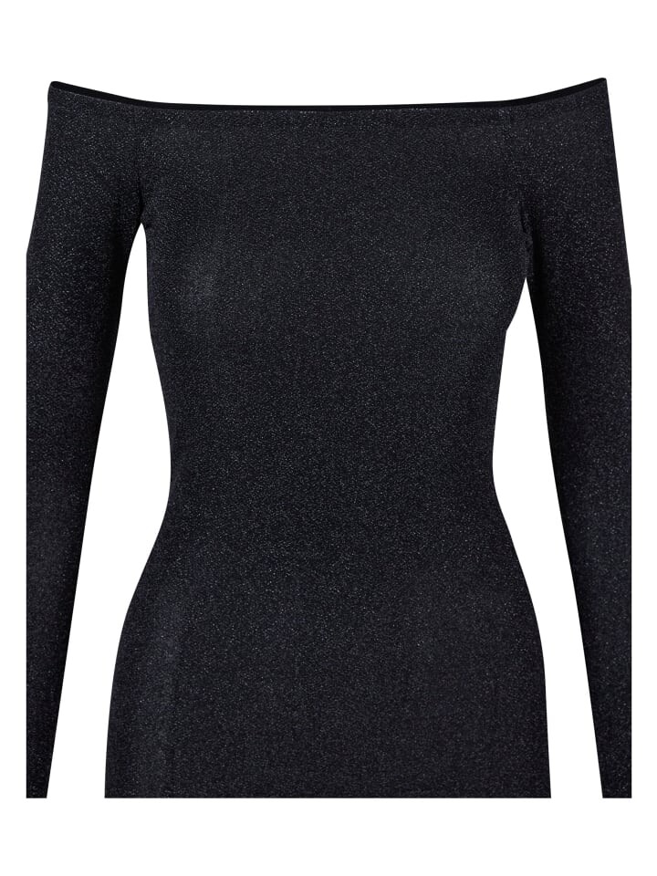Благодаря захватывающему крою и сверкающим блесткам на ткани это женское платье поистине излучает гламур. Он полностью снимается с плеч и сохраняет форму благодаря тонкому силиконовому ремешку внутри. Платье имеет длину миди выше колена и классические длинные рукава. Изготовлено из полиэстера с содержанием эластана, что обеспечивает облегающую посадку по фигуре.
