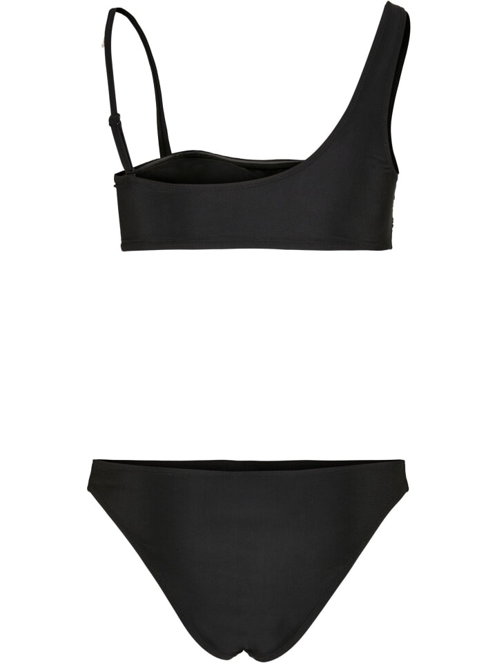 Бикини без рукавов с сильным характером гарантированно привлечет внимание. Топ-бандо имеет асимметричный крой, а также имеет бретели разной ширины, один из которых также является съемным, поэтому надевать и снимать его очень легко. Трусики имеют привлекательный бразильский крой. А красивое бикини также экологически чистое, так как изготовлено из переработанного полиэстера.