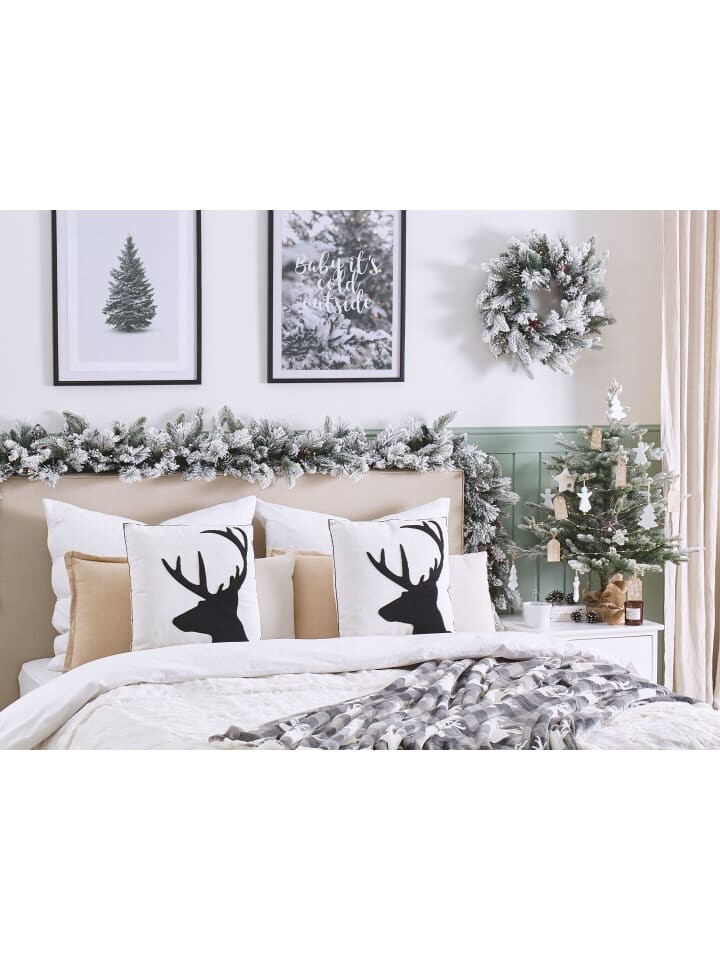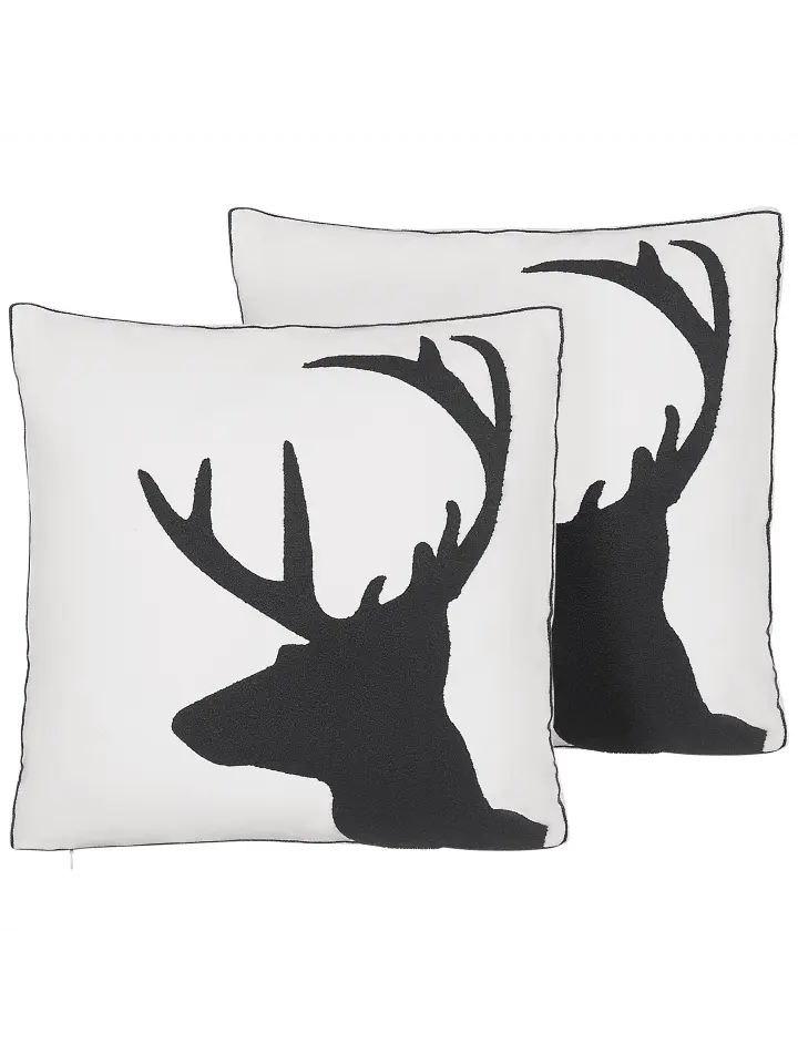 Минималистичный рождественский набор подушек. Рождество не должно быть ярким. Для тех, кто предпочитает более утонченный декор, этот набор декоративных подушек – то, что нужно. Они изготовлены из высококачественного, но прочного хлопка и наполнены мягким и пушистым синтетическим наполнителем, обеспечивающим максимальный комфорт. На каждой обложке изображен черный олень, создающий элегантный минималистский вид, который органично впишется в любой современный декор.