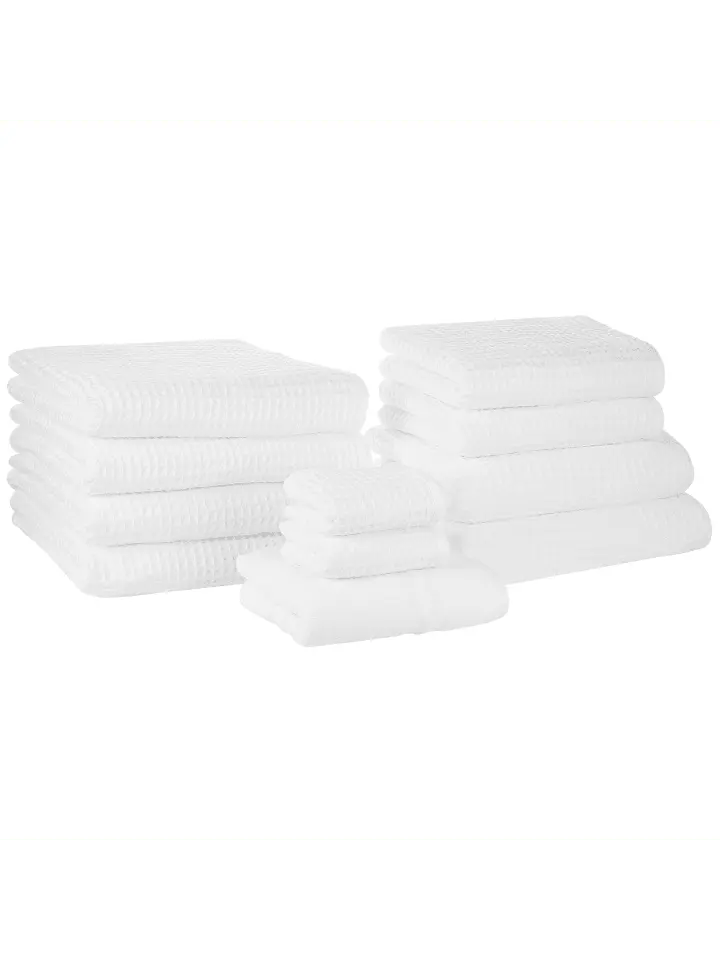 Модный набор полотенец из инновационной пряжи нулевой крутки с ковриком для ванной в тон. Этот комплект полотенец вафельной формы мгновенно станет вашим любимым. Вафельная структура придает полотенцам роскошный вид и идеально подходит в качестве гостевых полотенец. Они сотканы без скручивания и имеют плотные волокна, которые кажутся очень мягкими и теплыми. Благодаря изогнутой структуре влага быстро впитывается кожей, и полотенце высыхает за короткое время. В комплект входят гостевые полотенца, полотенца для рук, банные полотенца и коврик для ванной в тон.