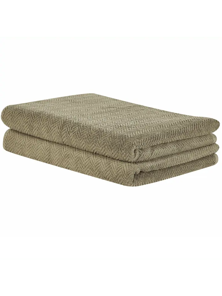 Ультрамягкий, роскошный комплект банных полотенец из 2 штук из высококачественного хлопка. Позвольте себе побаловать себя после ванны или душа. Этот роскошный комплект полотенец изготовлен из высококачественной хлопковой пряжи, которая порадует вас своей мягкостью. Чесаная тонкая пряжа является идеальным материалом для любой ванной комнаты благодаря своим сверхмягким на ощупь, впитывающим и быстросохнущим свойствам. Полотенца украшены изящным зигзагообразным узором и имеют усиленные края, что не только придает им элегантный вид, но и защищает от истирания.